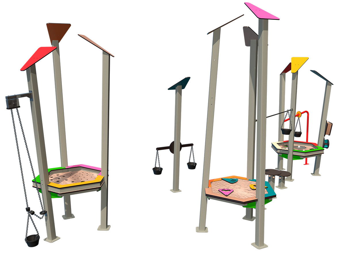 Este combinado favorece el juego sensorial y exploratorio a través de la manipulación libre de arena, estimulando la creatividad y la experimentación. Las distintas estaciones permiten el desarrollo de la motricidad fina, la coordinación ojo-mano y la planificación de acciones sencillas. El uso compartido de los espacios promueve la interacción espontánea, la comunicación y el juego paralelo o cooperativo. El diseño accesible facilita que cada usuario participe a su propio ritmo, fomentando la autonomía y la confianza durante la actividad lúdica.