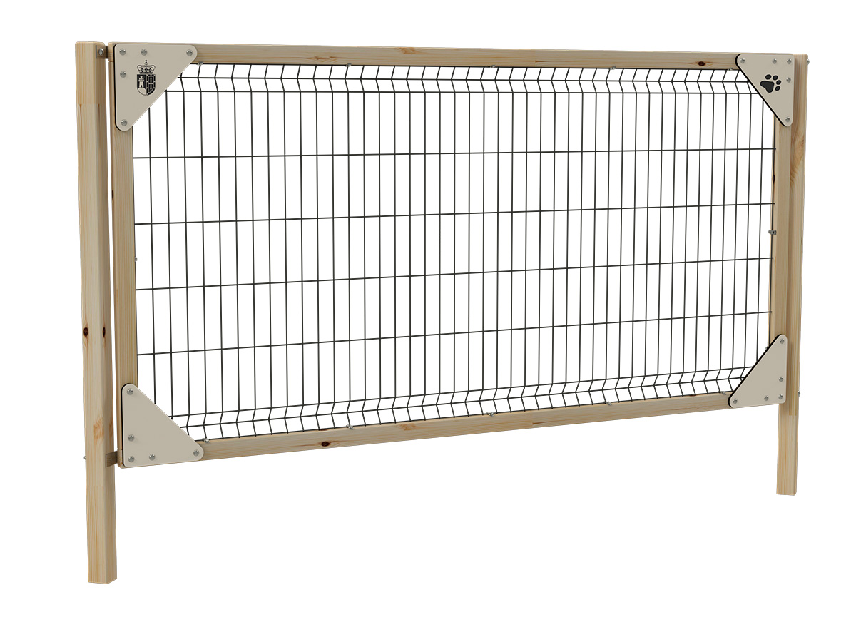 Cerramiento para áreas caninas diseñado para delimitar espacios de forma segura y resistente en entornos urbanos. Su estructura combina madera de pino tratada con mallazo metálico de acero galvanizado, ofreciendo una solución duradera, funcional y de bajo mantenimiento para parques y zonas específicas para mascotas.