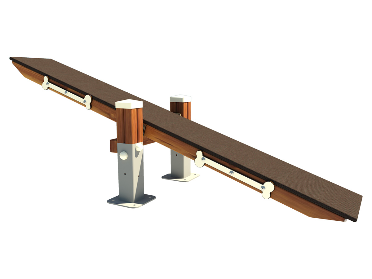 Fabricado con madera de pino tratada para exteriores, tablero antideslizante de contrachapado de abedul y refuerzos en HPL de alta presión, garantiza una alta resistencia frente a la intemperie y al uso intensivo en áreas caninas públicas. Incorpora herrajes galvanizados, tubo de aluminio estructural y anclajes galvanizados en caliente que aseguran estabilidad y larga vida útil.
