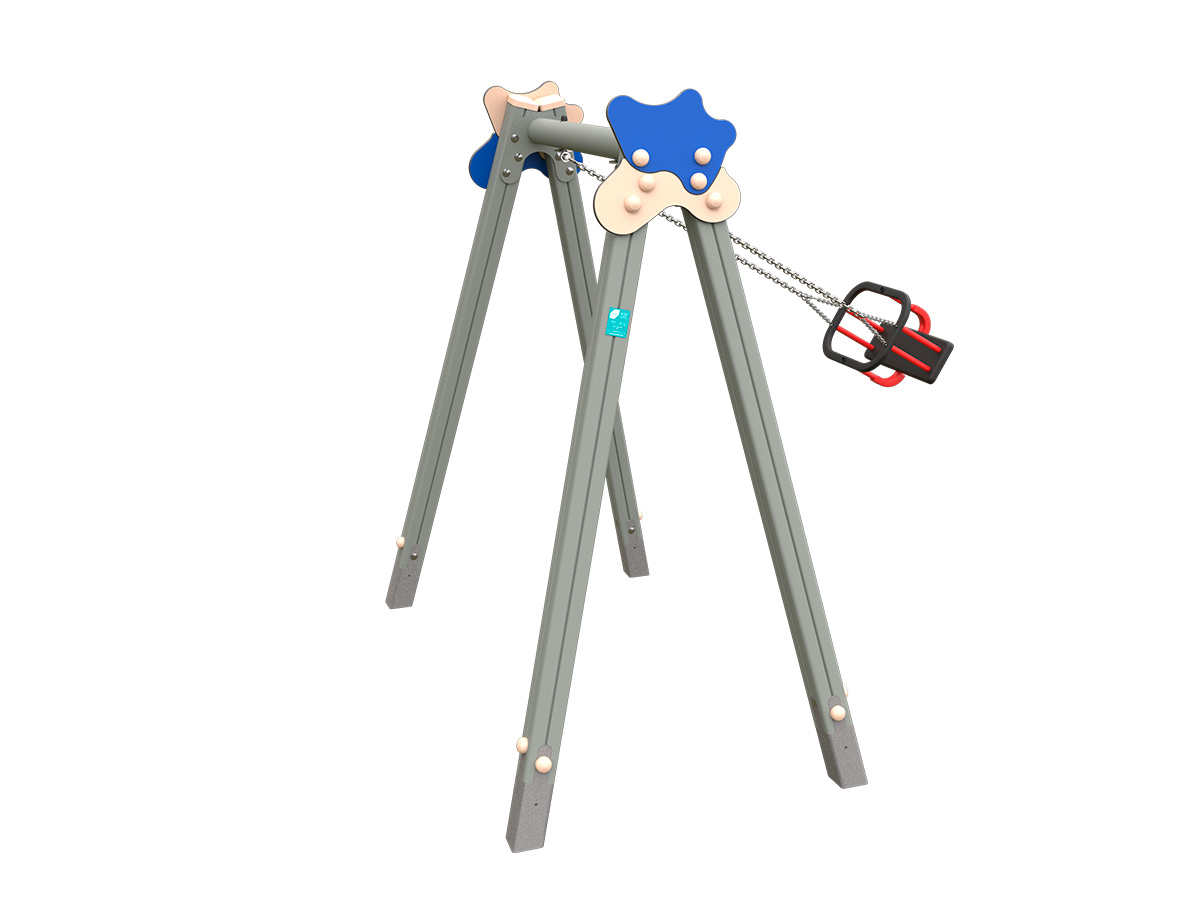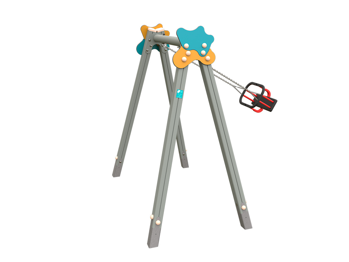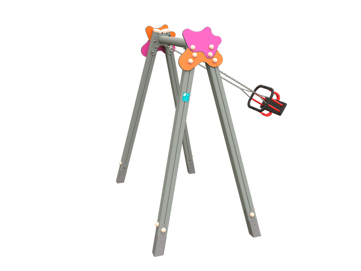 Nuestro columpio de un asiento cuco o COL-05 dispone de una estructura pequeña formada por cuatro pies inclinados unidos mediante un larguero superior. El asiento tipo cuco, suspendido mediante eslabones metálicos, ofrece una sujeción perimetral que aporta mayor estabilidad y seguridad durante el balanceo. Su configuración individual favorece un uso controlado y adaptado a edades tempranas. En la parte superior incorpora una careta decorativa intercambiable disponible en diferentes colores y formas temáticas, permitiendo su integración en diversos entornos lúdicos.