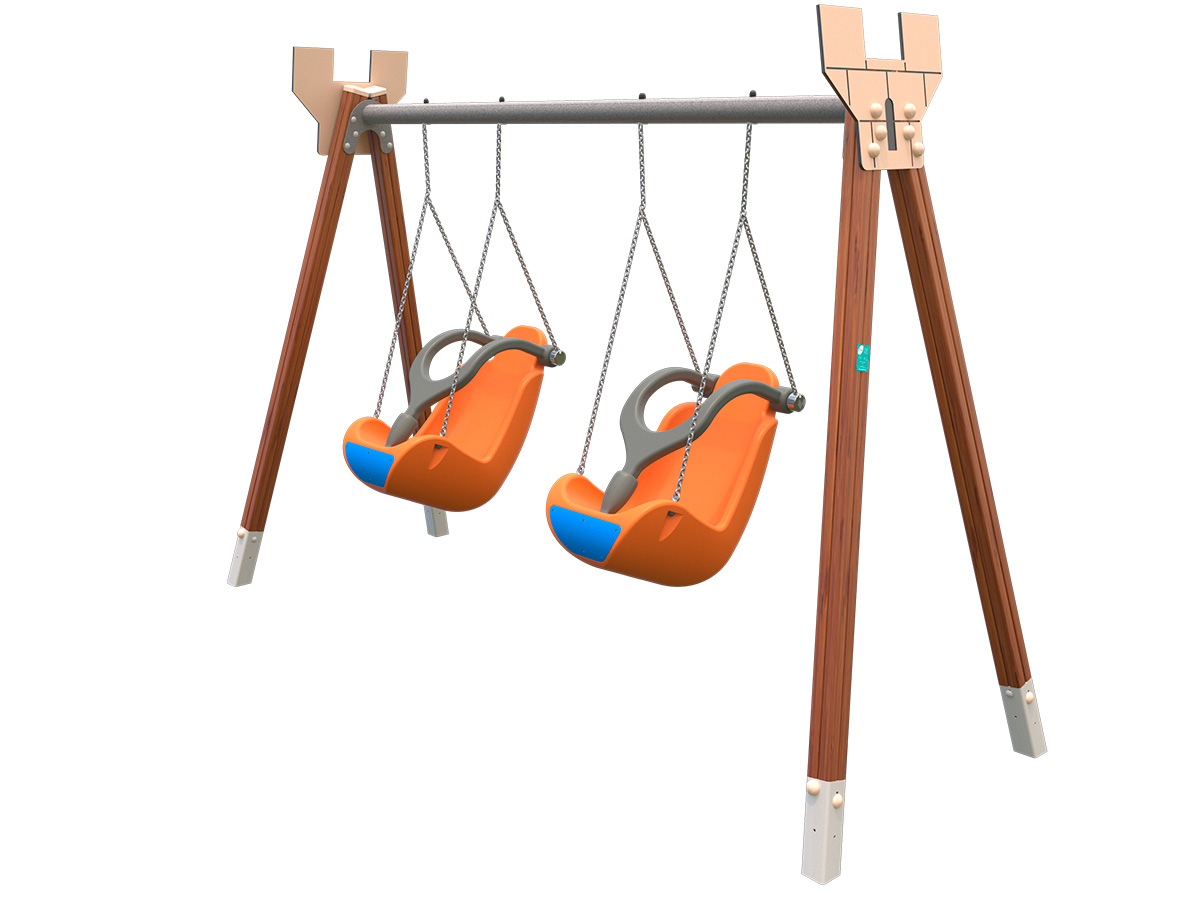 Favorece el desarrollo del equilibrio, la coordinación y el control postural mediante un movimiento pendular suave y continuo. La tipología del asiento proporciona mayor estabilidad y sujeción, facilitando la participación de usuarios que requieren apoyo adicional. El balanceo estimula el sistema vestibular y la percepción corporal, mientras que la disposición doble fomenta la interacción, la socialización y la vivencia compartida del juego, fortaleciendo la autoestima y la confianza.