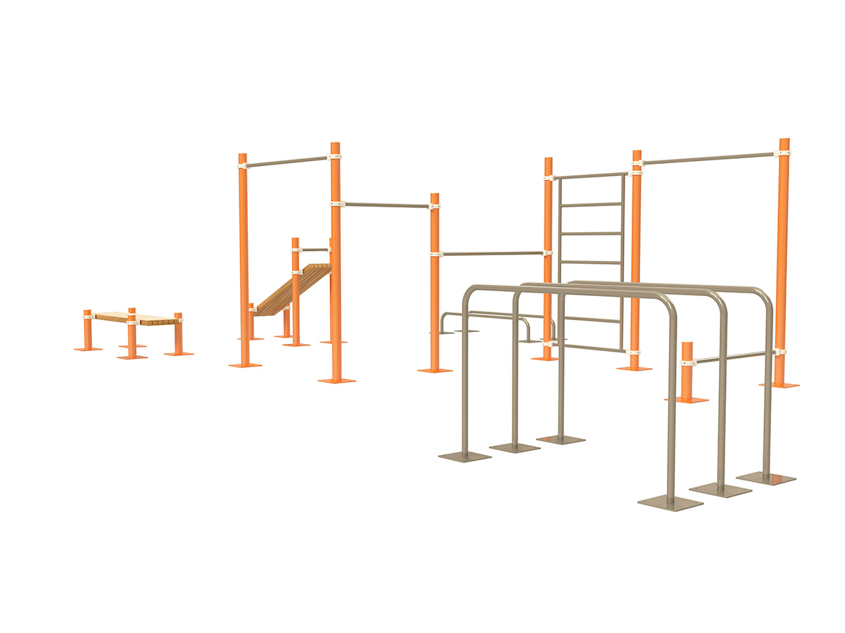 Conjunto deportivo de exterior orientado al entrenamiento de calistenia y workout. Ofrece diversas opciones para el ejercicio físico, combinando funcionalidad y versatilidad en un mismo elemento.