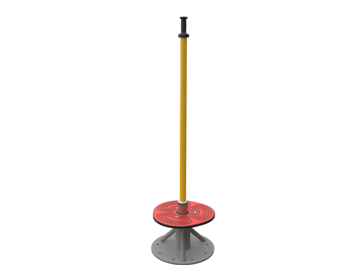 Nuestro juego dinámico Spirou o JDC-03 es un juego dinámico de giro individual diseñado para fomentar el equilibrio, la coordinación y el control corporal. El conjunto lo forman una plataforma circular y una barra vertical central que el usuario utiliza como punto de apoyo mientras gira sobre sí mismo.
