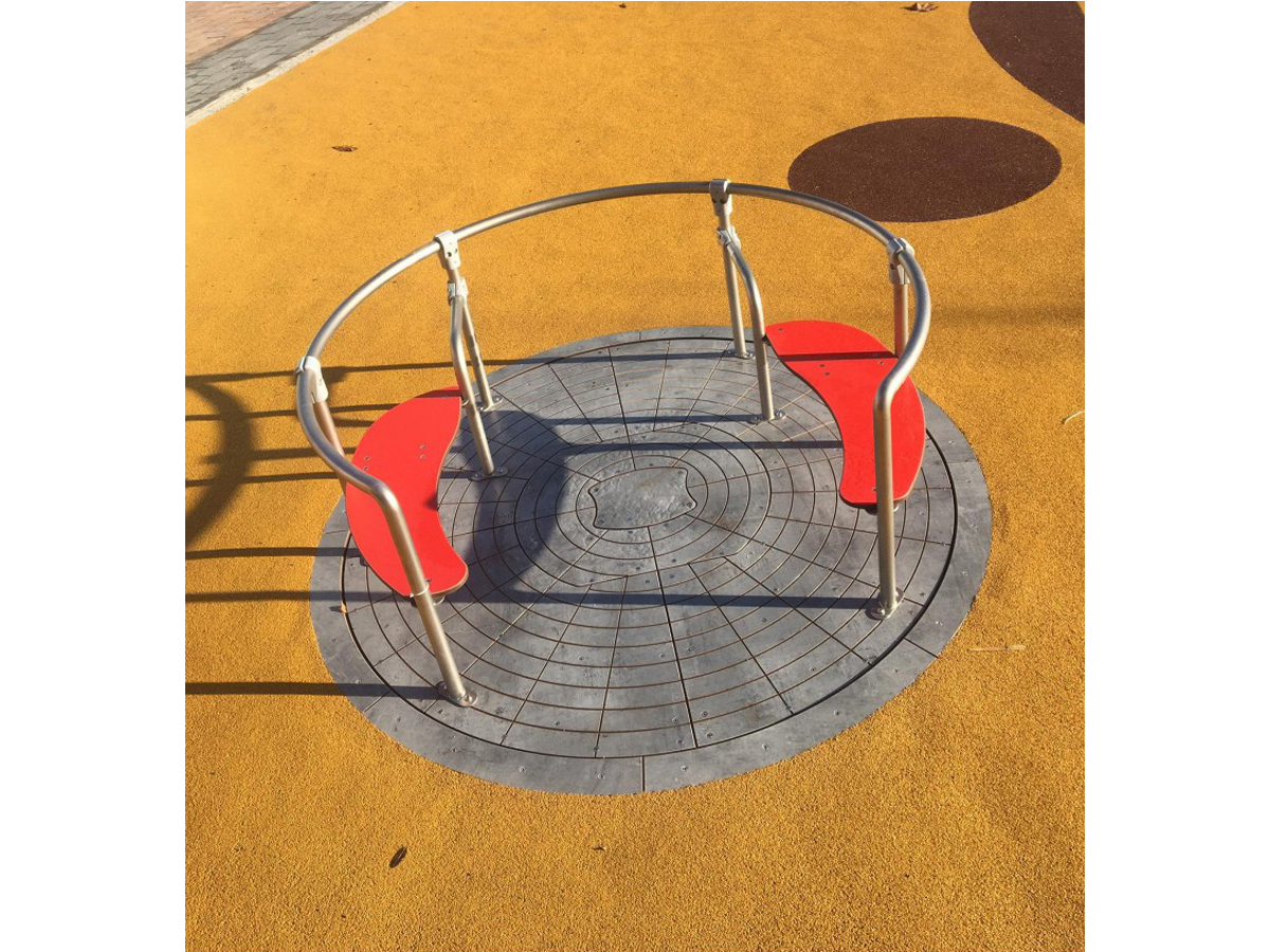 El carrusel accesible Demons o JDCI-03/4079 es un juego infantil de integración diseñado para el juego rotatorio a baja altura. El conjunto dispone de una plataforma circular amplia que permite el acceso directo de usuarios en silla de ruedas, sin obstáculos ni desniveles. Incorpora una zona específica para la permanencia segura de la silla, así como asientos integrados destinados a otros usuarios o acompañantes. El carrusel cuenta con diversos agarres verticales y horizontales distribuidos de forma accesible, facilitando la sujeción durante el giro. El diseño permite la participación simultánea de hasta 3 usuarios, favoreciendo un uso compartido y seguro. El movimiento se realiza mediante rotación manual, ofreciendo un giro progresivo y controlado. Su configuración está pensada para un uso inclusivo y estable en áreas infantiles.