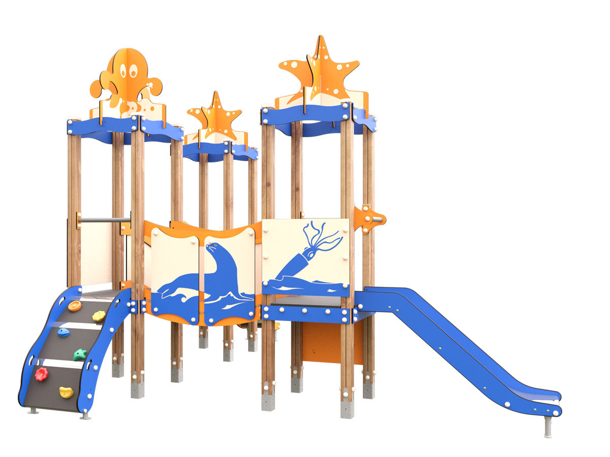 Nuestro compacto Mar Tirreno o JMC-200-04 M, es un juego infantil modular fabricado en materiales resistentes y duraderos, ideal para parques y áreas recreativas.