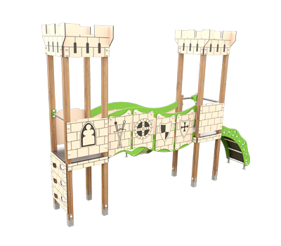 Nuestro compacto Villena o JMC-200-10 C, está formado por dos torres de 1,2 m de altura, conectadas mediante un pasarela curva elevada con barandillas protectoras. Las plataformas ofrecen espacios seguros para el descanso y la observación, permitiendo que los niños tomen decisiones sobre cómo continuar su recorrido.