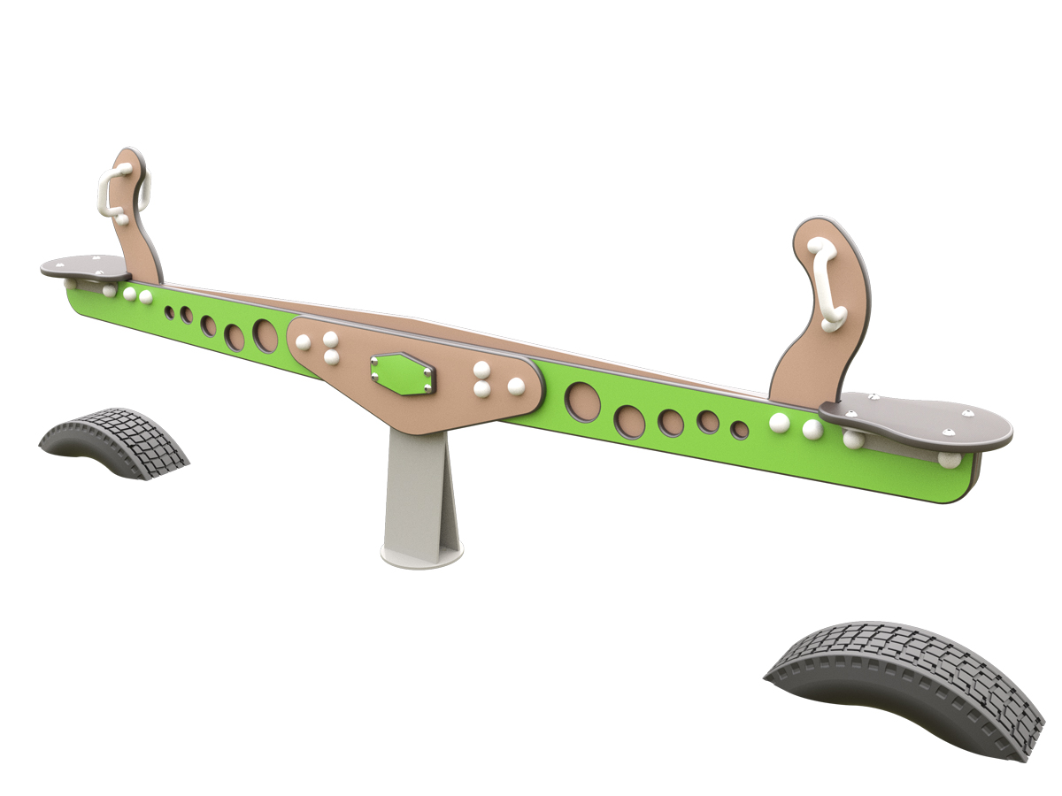 Nuestro balancín 2 plazas o JMC-310 está compuesto por una estructura central metálica de acero que garantiza estabilidad y resistencia frente a la intemperie. El tablero principal está fabricado de HPL, con formas redondeadas y perforaciones decorativas que aportan ligereza visual y seguridad. Los asientos ergonómicos están equipados con asideros de fácil agarre para mejorar la sujeción durante el juego, y los topes de goma en la parte inferior amortiguan el movimiento, reduciendo impactos y ruidos.