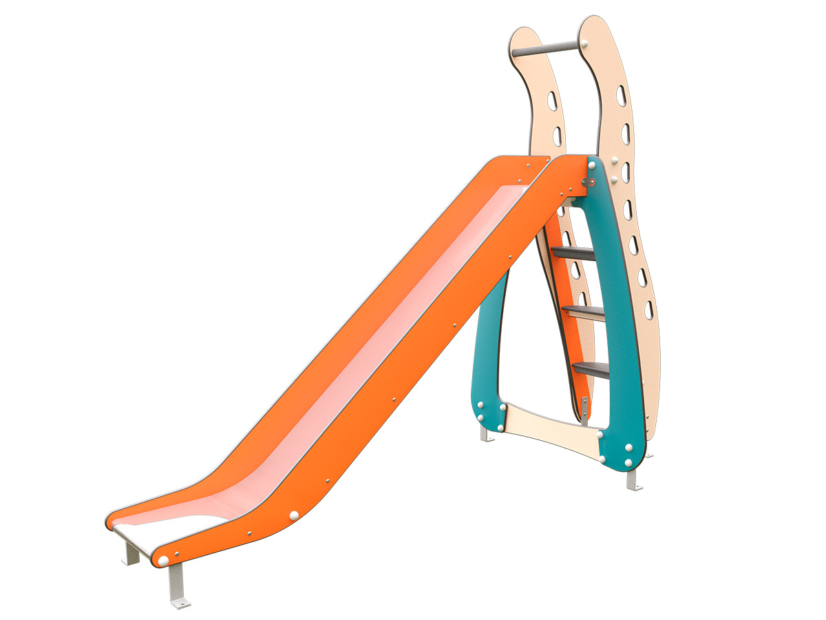 El tobogán autoportante 1,50m o JMC-4150 es un elemento de juego infantil de de gran formato con una altura de plataforma de 1,50m, diseñado para ofrecer una experiencia de deslizamiento más prolongada y estimulante. La estructura de compone de paneles laterales en HPL de distintos espesores, que aportan resistencia, estabilidad y un acabado duradero para uso exterior intensivo. El acceso se realiza mediante una escalera integrada con peldaños antideslizantes, dimensionados para facilitar una subida progresiva y segura. En la parte superior, el juego incorpora un asidero fabricado en tubo metálico que mejora la estabilidad del niño antes del inicio del descenso. La rampa de deslizamiento está diseñada con una pendiente suave y continua, favoreciendo un descenso controlado. Debido a su mayor altura, el conjunto incorpora apoyos estructurales adicionales tanto en la zona superior como en la inferior, aumentando la estabilidad global del elemento. El diseño mantiene líneas suaves y bordes redondeados para garantizar la seguridad durante el uso. Es un elemento pensado para instalarse de forma independiente en áreas de juego infantiles.