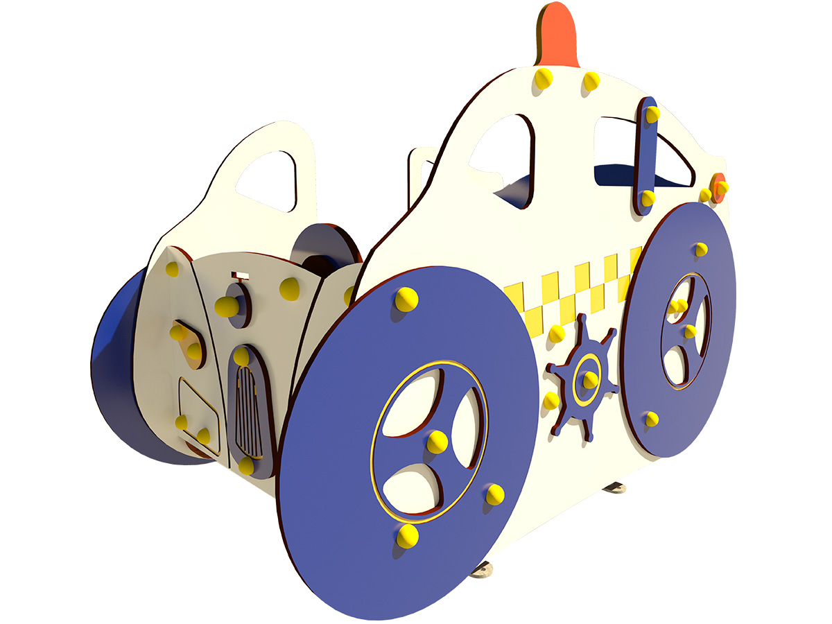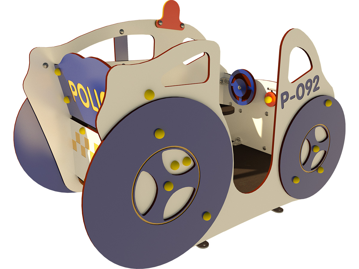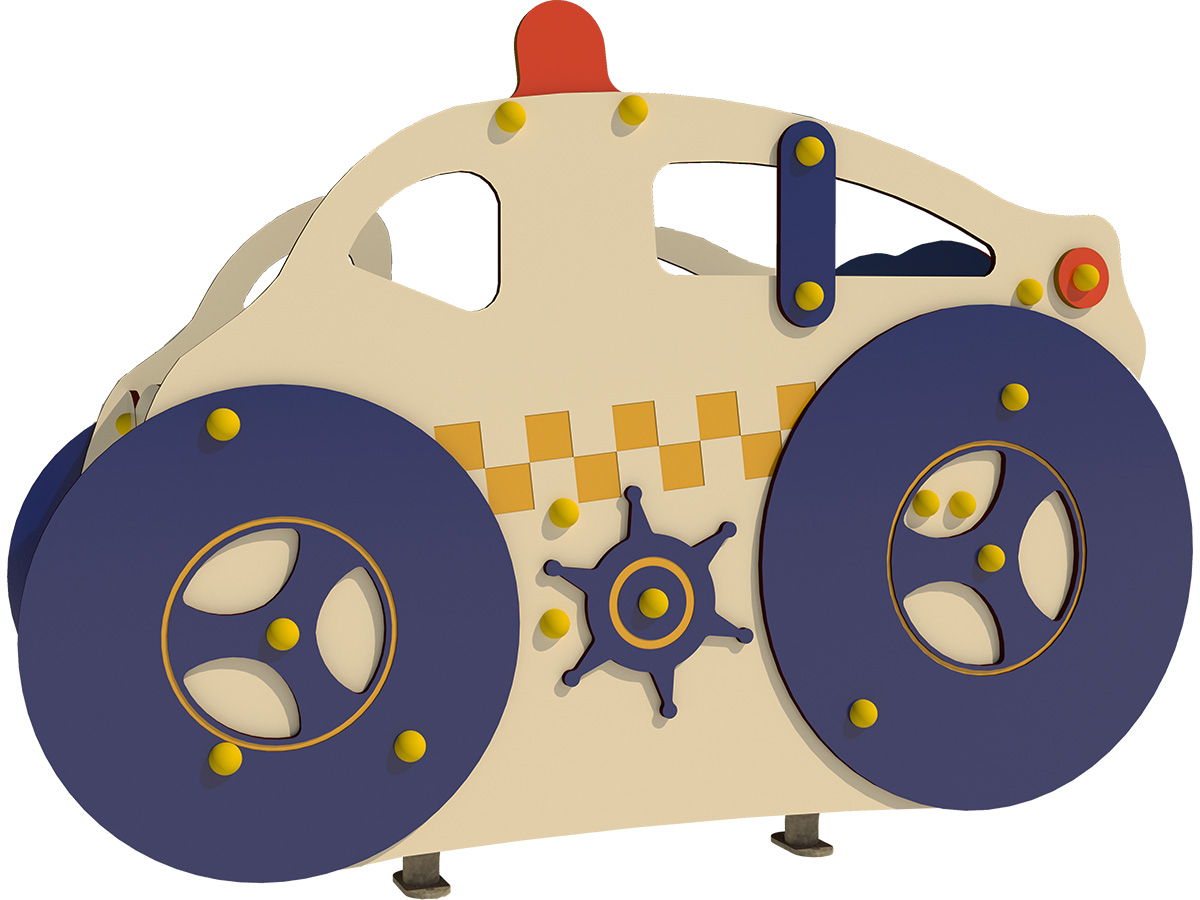 El coche de policía o JMC-501P es un elemento de juego simbólico de temática policía, diseñado para el juego a ras de suelo y orientado a edades tempranas. La estructura se compone de paneles de HPL en distintos espesores, conformando el volumen del vehículo y garantizando resistencia y durabilidad para uso exterior. El interior dispone de accesos amplios que facilitan la entrada y salida del niño, permitiendo el juego desde diferentes posiciones. Incorpora elementos gráficos y volúmenes integrados en los propios paneles que refuerzan la identidad del vehículo sin añadir piezas sobresalientes. El diseño presenta bordes redondeados y superficies continuas para asegurar un uso seguro. La altura reducida del conjunto permite su instalación sin necesidad de plataformas ni elementos de acceso. Es un juegos pensado para instalarse de forma independiente o como complemento dentro de áreas de juego infantil.
