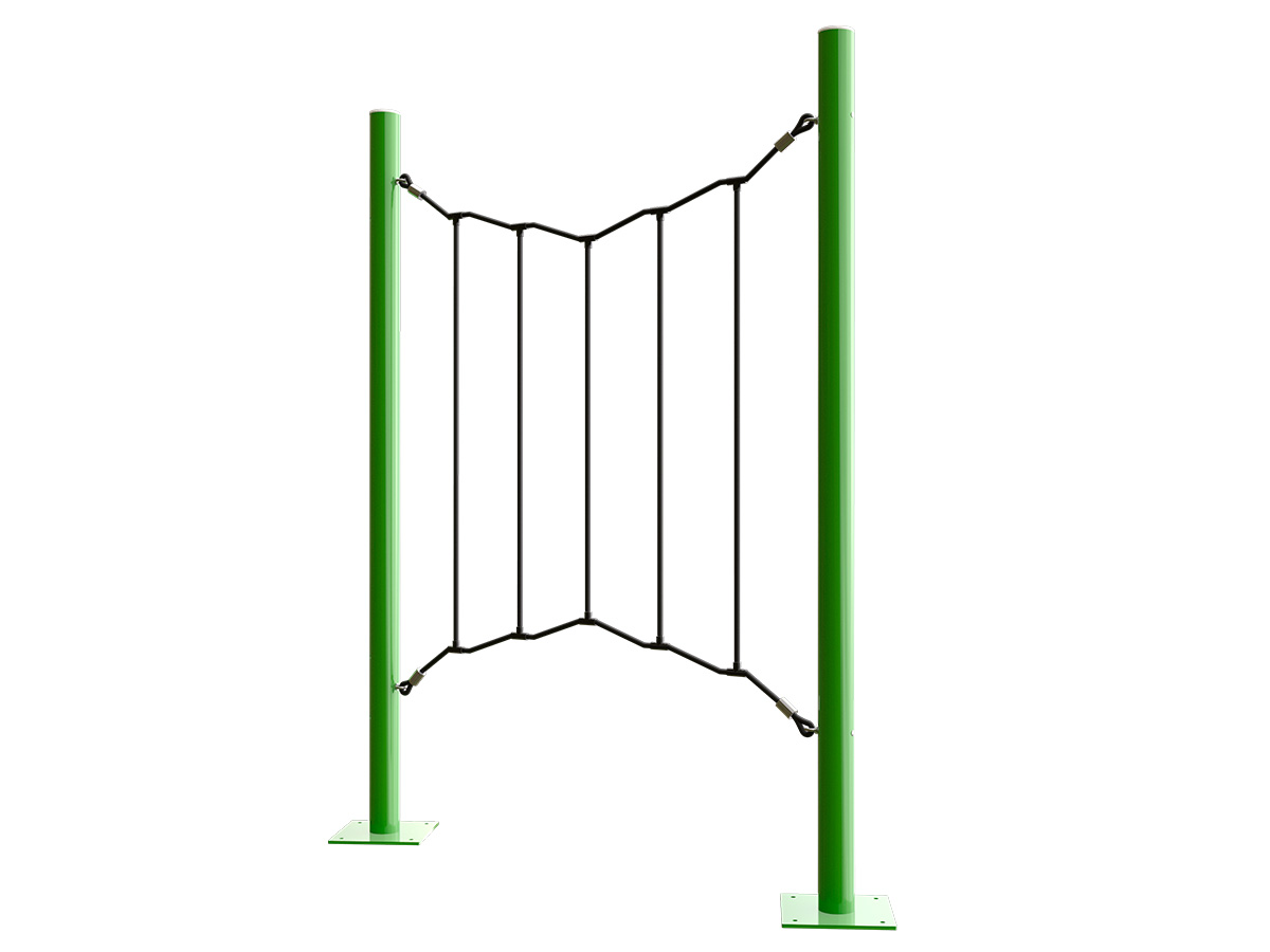 Está compuesto por dos postes verticales de acero y una estructura intermedia formada íntegramente por cuerda tipo Hércules con alma de acero. Este entramado, tensado entre ambos postes, genera una superficie móvil y flexible que se deforma con el peso y el movimiento del usuario, ofreciendo una experiencia dinámica y estimulante.