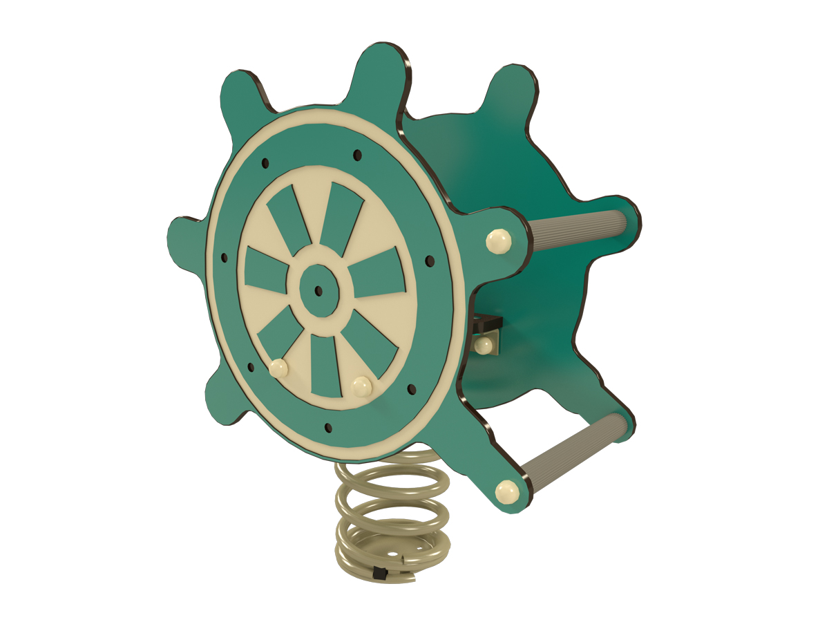 La estética temática reproduce un timón en tonos verde mar, con detalles decorativos que evocan el mundo marítimo y aportan un diseño reconocible que atrae a los más pequeños. La estructura cuenta con cantos redondeados, fijaciones seguras y materiales duraderos, asegurando resistencia al desgaste y un mantenimiento sencillo en áreas de juego.