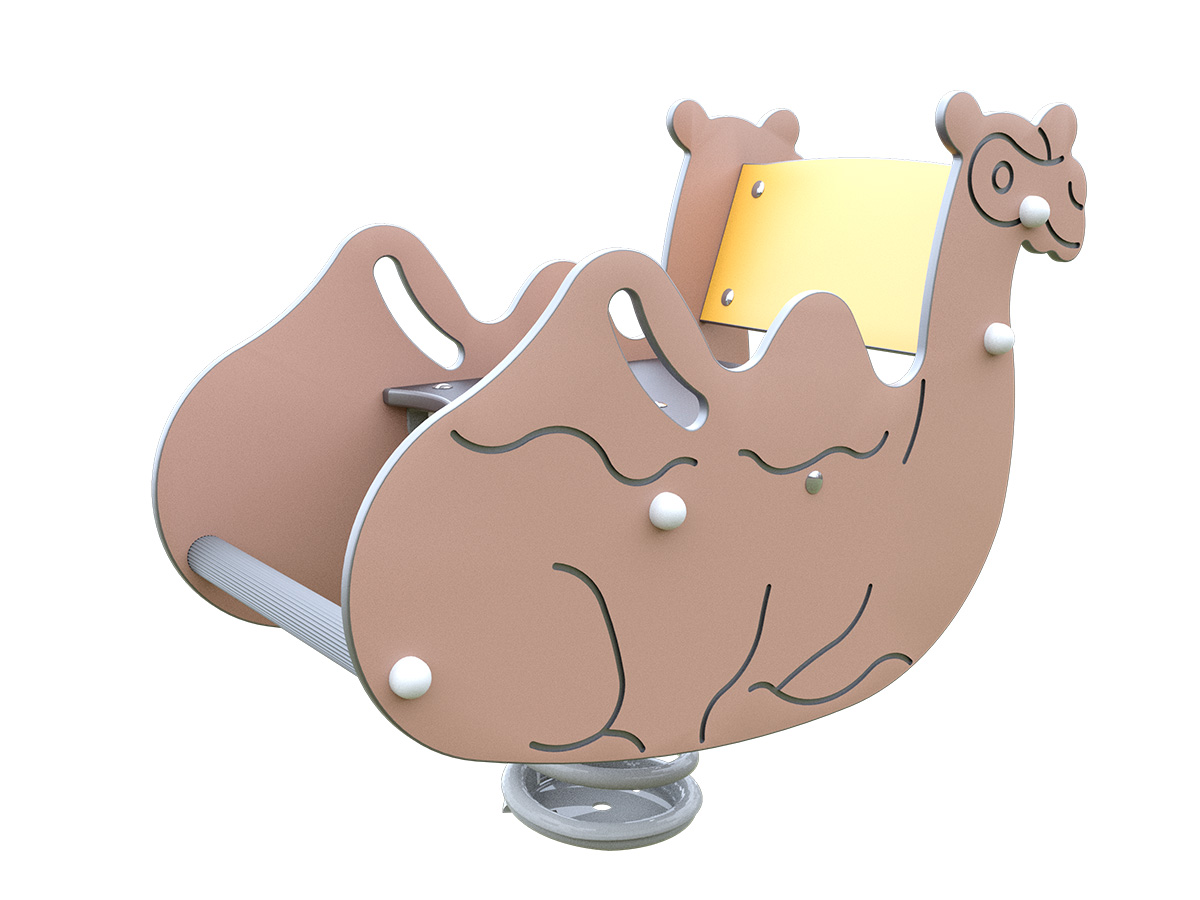 Muelle Camello de integración o MCI-08 es un juego infantil de muelle individual, concebido para el balanceo controlado y el movimiento dinámico a baja altura. El elemento se compone de paneles laterales en HPL con formas orgánicas y temática de camello, que configuran el cuerpo del juego y sirven como apoyo durante el uso. Dispone de asiento integrado de mayor anchura y reposapiés frontal antideslizante, facilitando una posición estable y cómoda para el niño.